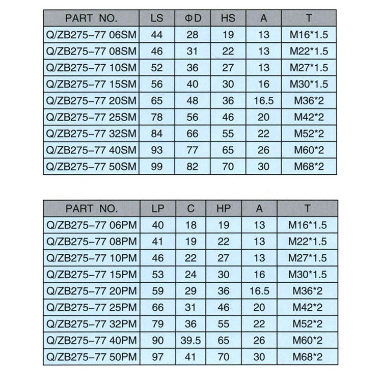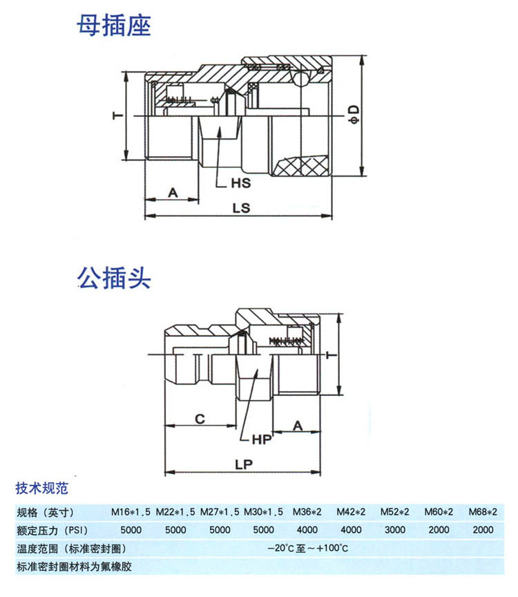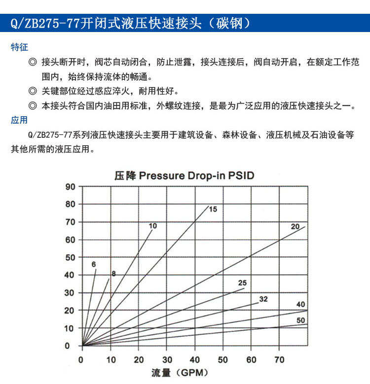 Q/ZB275-77開(kāi)閉式液壓快速接頭(碳鋼)